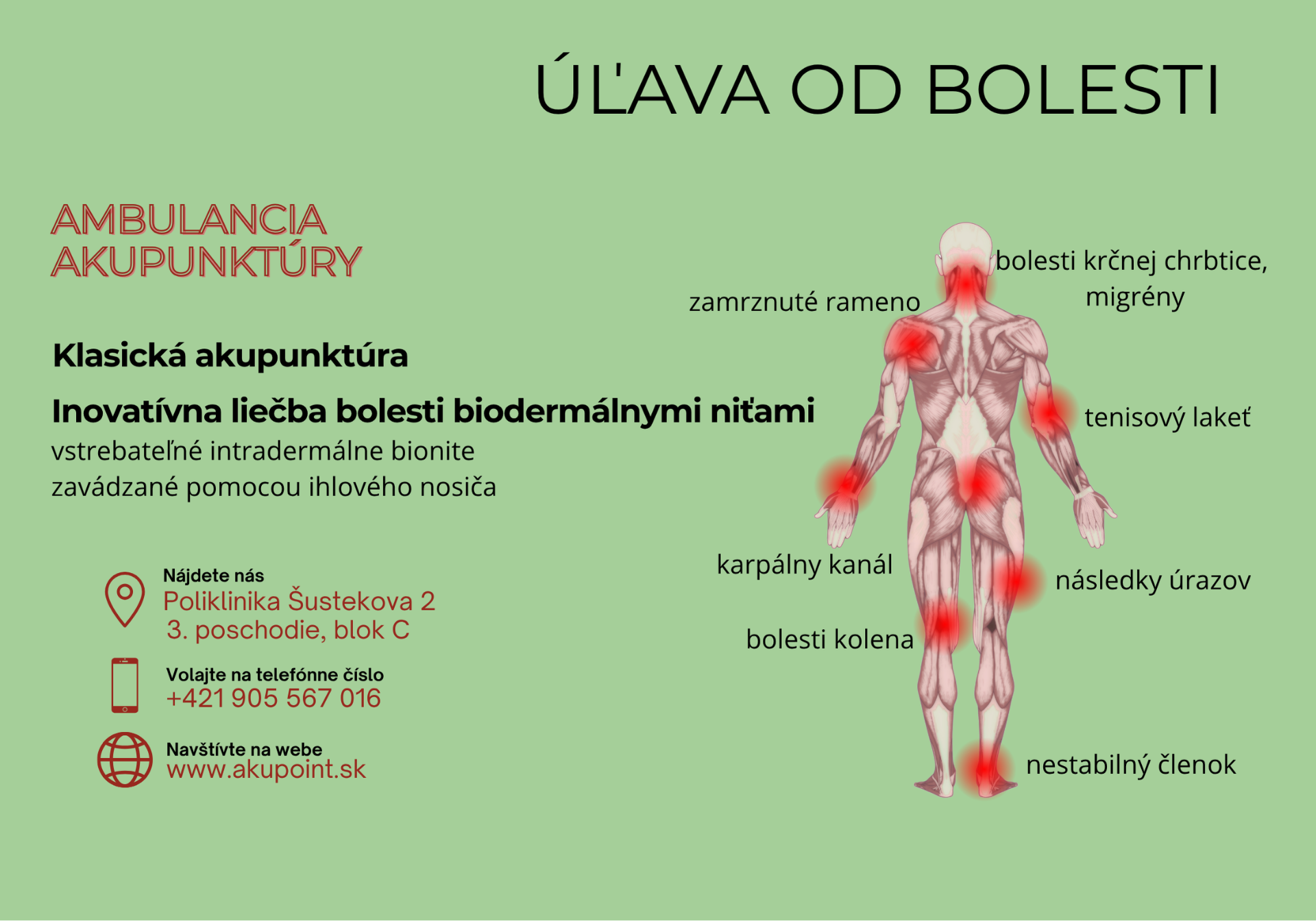 Liečba biodermálnymi niťami predstavuje modernú doplnkovú terapiu zameranú na akútne aj chronické bolesti pohybového aparátu. Táto metóda spája princípy modernej medicíny a akupunktúry.